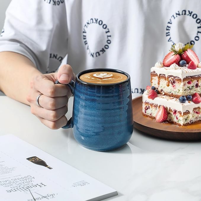 - EXQUISITE AND VINTAGE DESIGN: Hasense large coffee mugs are feature reactive navy glaze which is a beautiful and classic decor for your home and kitchen. Are you looking for a coffee mug set for daily use? Then our blue coffee mugs will be the right set for you.