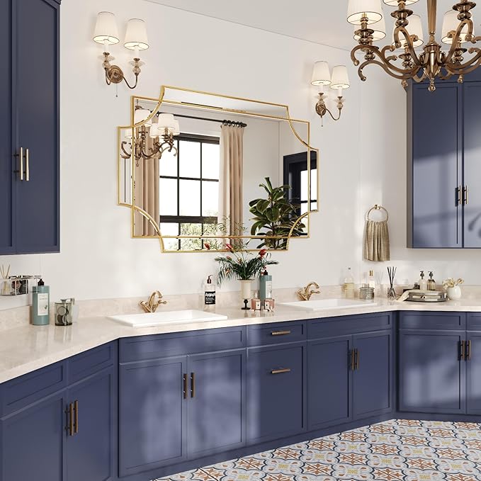 - UNTIQUE DESIGN. If your want some intricacies/interest to the pattern - not just a simple round or rectangle, this mirror will definitely be your perfect choice. Its sophisticated cutout corner accents along the inner and outer edges of the frame complete the look with added decorative detail. It will be a beautiful addition to any wall and an essential element in your home decor.