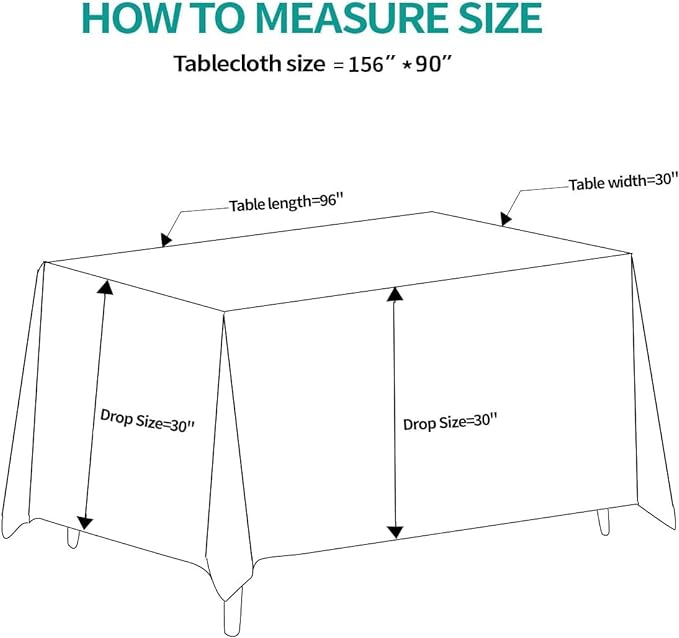 - Ideal size: The 90x156 rectangular tablecloth size is perfect for rectangular and oval tables, providing full coverage protection while also easily hanging down the edges to add a touch of elegance to your table