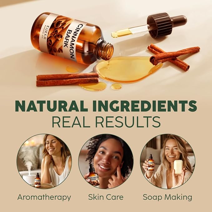 Kukka Cinnamon Essential Oil for Skin & Diffuser - 4 Fl Oz - 100% Pure Natural Cinnamon Oil, Aromatherapy and Candles & Soap Making Scent DIY
