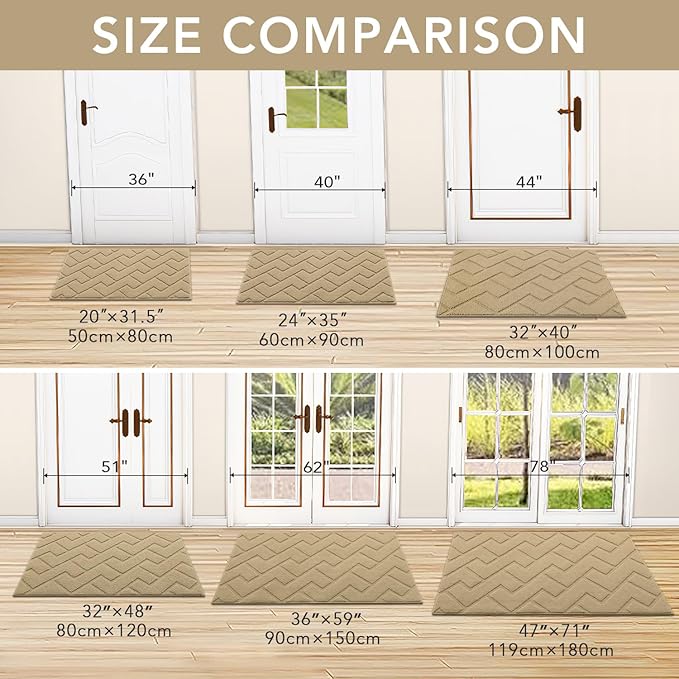 hicorfe Front Door Mat Outside Entrance,20"x31.5" Absorbent Muddy Dirt Resist Welcome Door Mats Outdoor Indoor,Stain and Fade Resistant,Non Slip Backing Entry Mat Doormat for Entryway(Beige)
