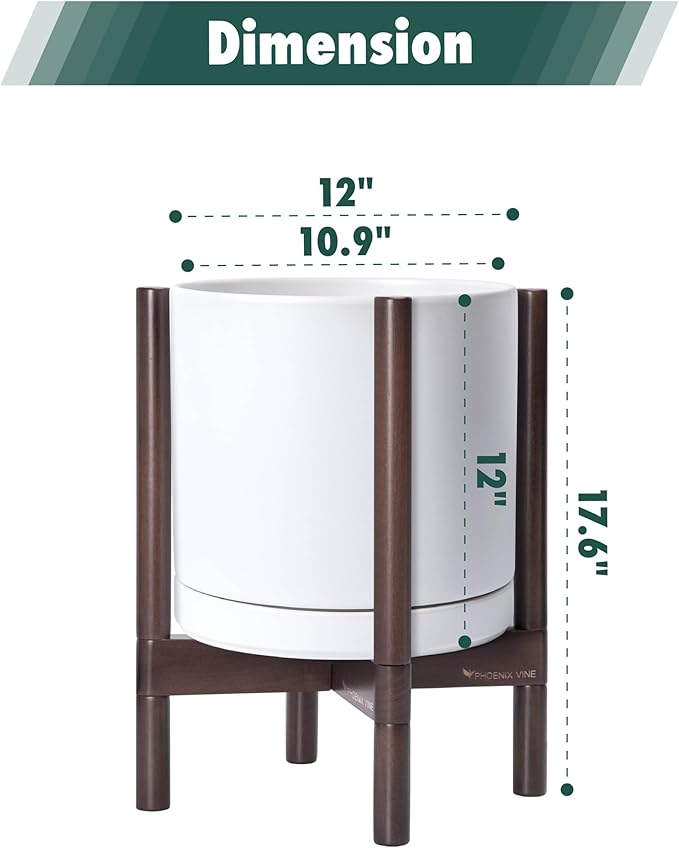 - 12 Inch Pot with Stand Set: Planter size: 11.8"Diameter x 11.8"H; pot with stand total height: 18.5 inch.