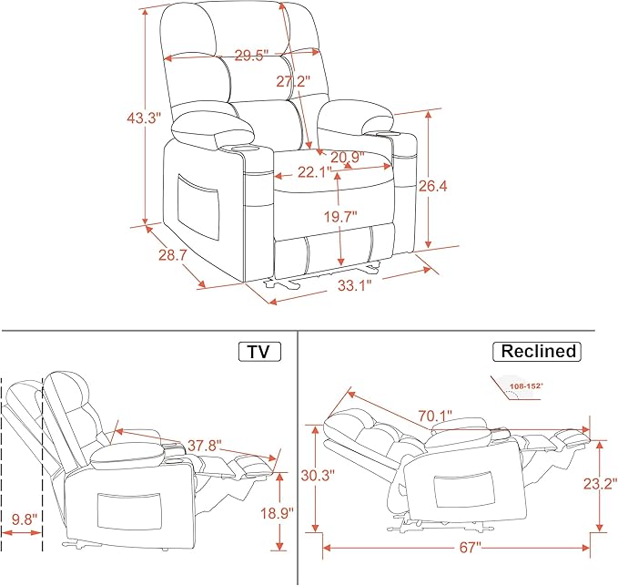 - 2-Year Warranty: Backed by industry-leading components and a 2-Year Limited Warranty, your investment is protected with free replacements for reclining mechanisms, electrical systems, upholstery & cushions, and frame structures (wood/metal)