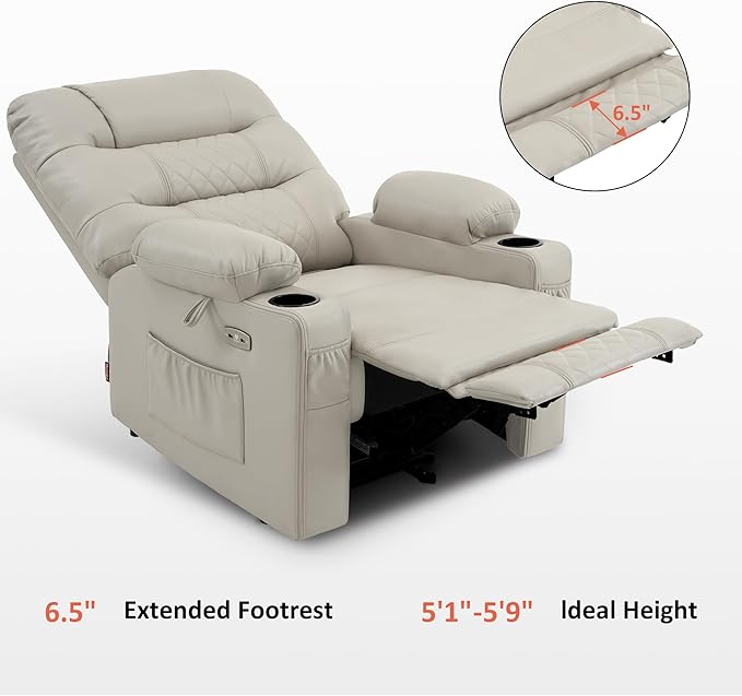 - Full Calf Support Extended Footrest: The extended footrest cradles your calves like a cloud — no more dangling or numb calves when reading, sleeping, or watching TV Recommended height: 5'1"–5'9"
