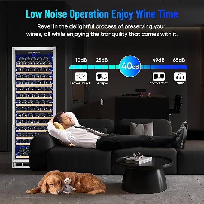 - 【Beechwood Shelf Design】The ORYMUSE wine fridge features 14 beechwood shelves, accommodating up to 180 standard Bordeaux (750 ml, thickness ≤ 2.75'') Wine bottles. With a spacious top and bottom design, it accommodates various wine types. Beechwood ensures strong stability, humidity control, and durability, and is environmentally friendly and healthy.