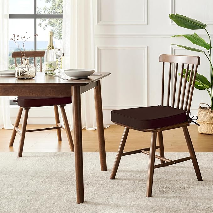downluxe Chair Cushions for Dining Chairs, Waterproof Kitchen Chair Pads, Non-Slip Dining Seat Cushion with Ties, 17" x 16" x 2.5", Brown, 4 Pack