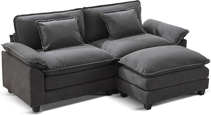 URRED Modular Sectional Sofa Comfy Cloud Couch, Modern Velvet Sofa Sleeper Deep Seat Couches with Ottoman/Pillows for Living Room (Dark Gray, 82.6''- L Shape)