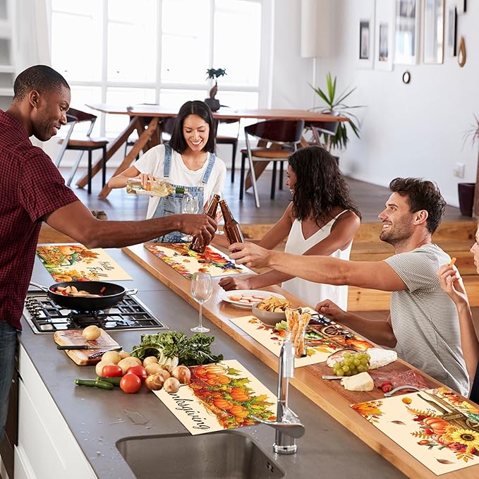 - 【Various Usage】These Thanksgiving table placemats with fall themes are perfect for a wide range of occasions, including birthday parties, family gatherings, picnics, barbecues, both indoor and outdoor events. They can also double as photo props, adding a touch of cheerful to your party atmosphere. These beautiful patterns, which are very decorative, can serve as fall holiday gifts for friends and family, who are sure to be happy with these cute little things