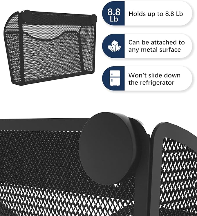 - MULTIPLE USES - You can put the magnetic file holder on the side of your filing cabinet, or on your refrigerator, whiteboard, etc. to reduce clutter on your desk and keep it tidy. It can also act as your magnetic mail holder,magnetic bill organizer, no more lost bills or mail