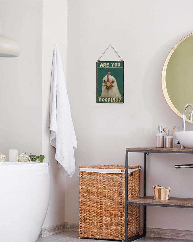 ALKB Chicken Metal Sign for Bathroom Decor - 8x12 Inch Are You Pooping Vintage Chicken Sign Gifts for Chicken Owners