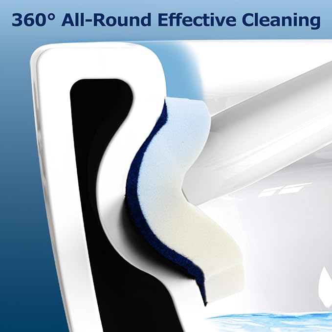 - PREMIUM QUALITY & SPACE SAVING: The arc handle connects the refill head with a 2.5-inch buckle thus refill pads will not fall off or fall apart during use. Most importantly the sponge doesn't come apart into pieces while you use it. The kit is compact and fits in a corner without taking up a lot of space. Buy it now and say goodbye to dirty toilet brushes sitting beside your toilet