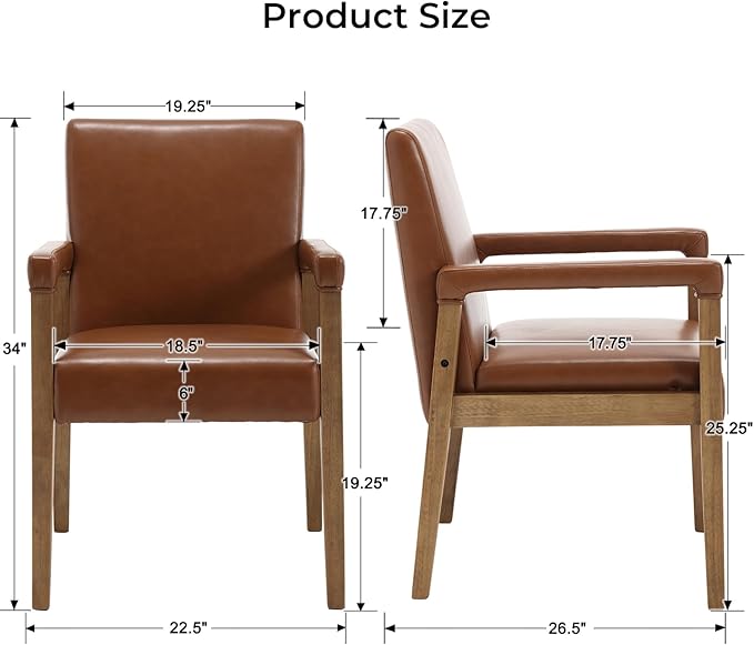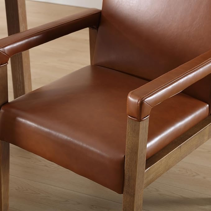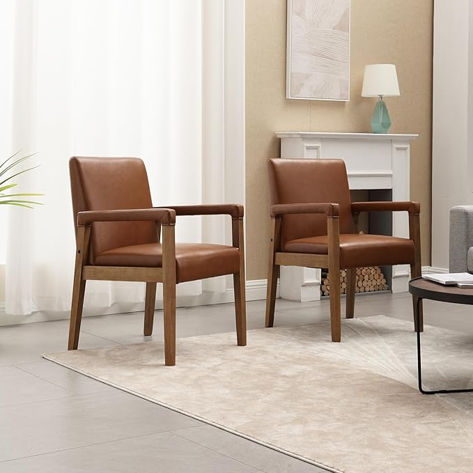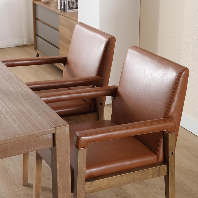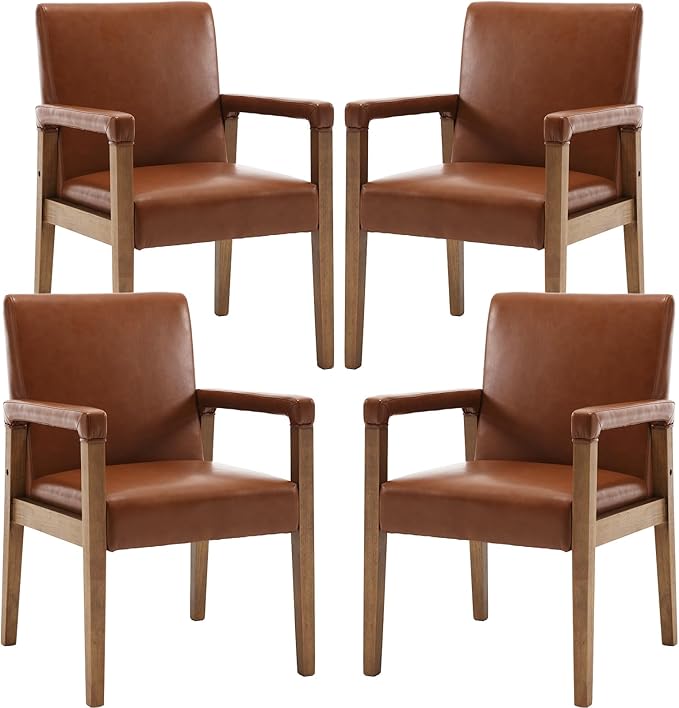 Mid Century Modern Dining Chairs Set of 4 Faux Leather Upholstered Living Room Side Chair, Kitchen Arm Chair with Solid Wood Legs for Home Kitchen & Restaurant, PU Brown