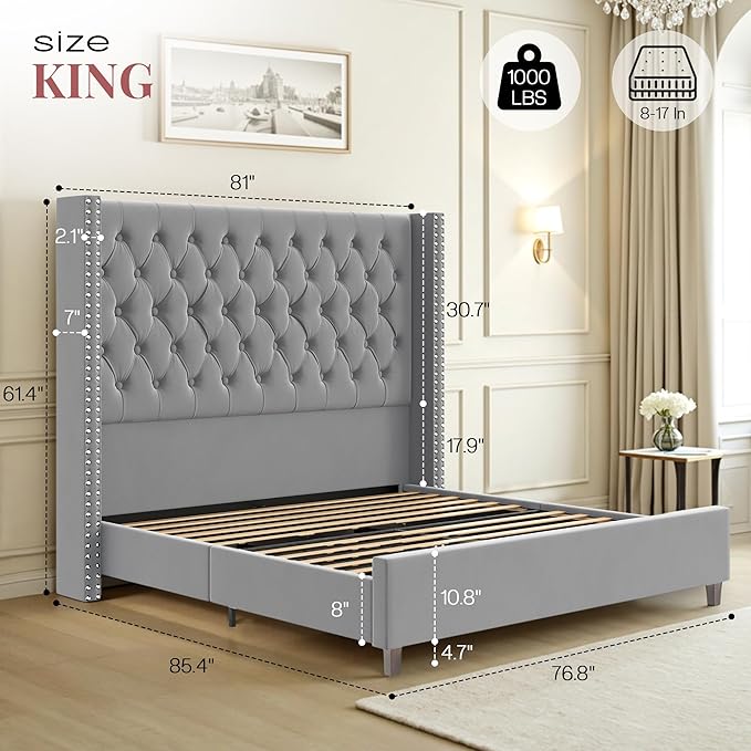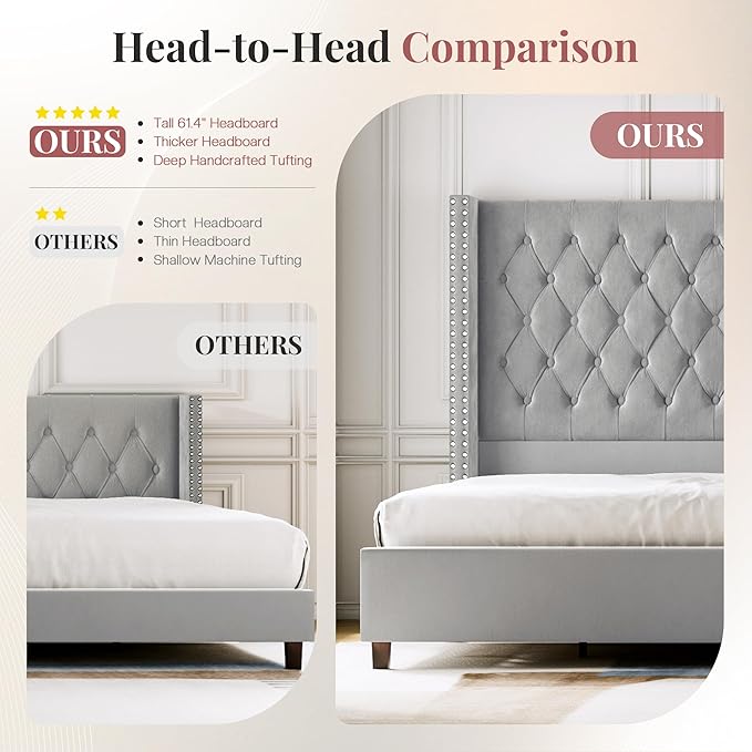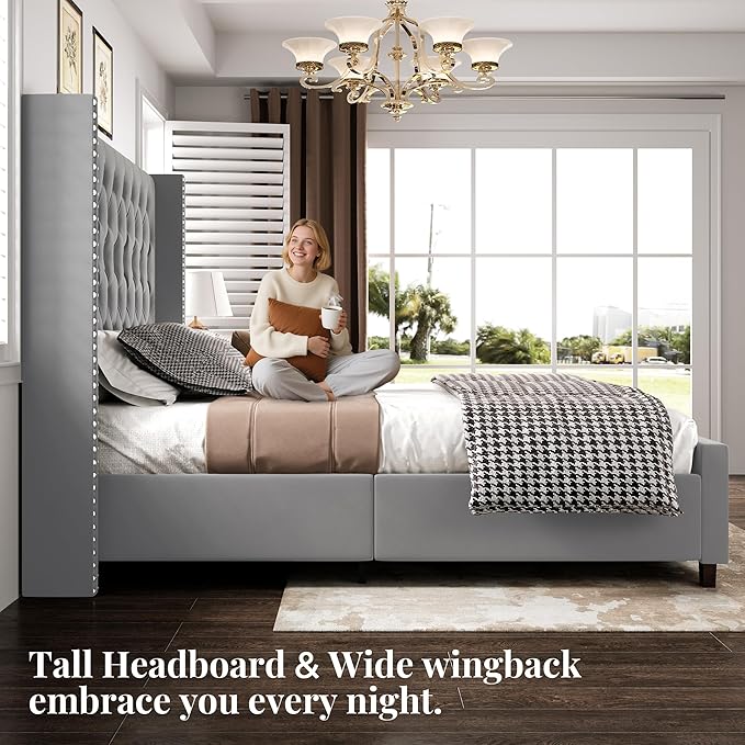 - Grand & Glorious: The 61.4” extra tall headboard with wide wingback offers an extraordinary level of comfort and elegance, turning your king size bed into a luxurious retreat.