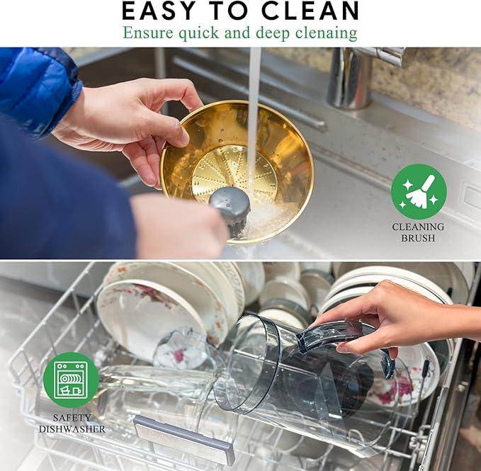 - 【Easy to Clean - Overheating Protection】 Compact juicer extractor for easy assembly and disassembly, you will finish cleaning in just two minutes. Safety lock unit for switching is specially designed, in order to make sure safety and reliability in use. When the temperature exceeds 105 degrees, the electric motor will stop automatically.