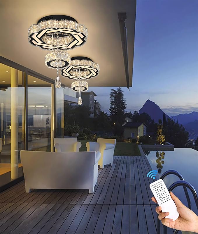 Flashing God Small Crystal Chandeliers Dia 12" Black Chandelier Flush Mount Ceiling Light for Bedroom Living Room Dining Room Hallway Dimmable 3 Rings LED Celing Lighting Fixtures