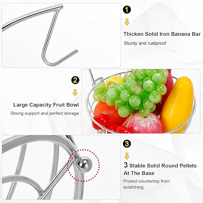 - THICKEN IRON BASE: Heavy weighted design of base is stable to protect fruit basket from falling when take out bananas, which is well-balanced.