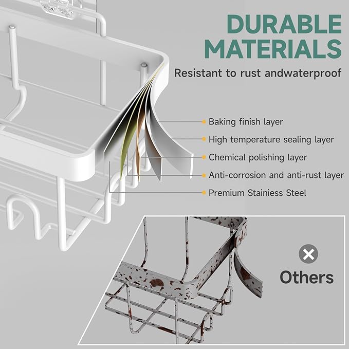 - Waterproof & Rust-Resistant: Engineered with waterproof and rust-resistant components, this caddy maintains its quality and appearance over time, even in damp environments