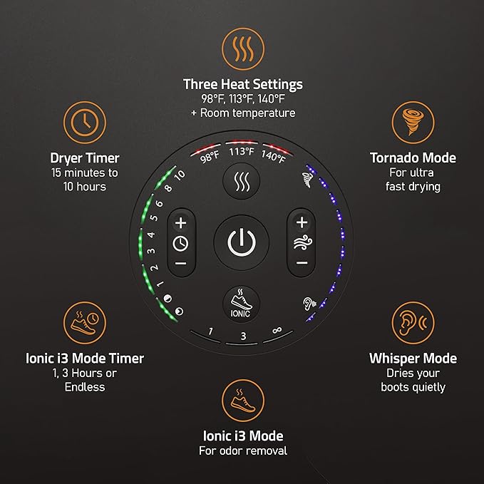 - Low heat for Ski boots, leather boots, and compact dryer: Form fit ski boots should only be dried at low heat, and most other shoes dryers are not recommended. We have a no-heat option for horse riding boots to prevent leather from cracking. Low heat at 113° F ideal for protecting the plastics of ski boots. Our shoe dryer is also suitable for compact drying needs, including portable boot dryer for work boots