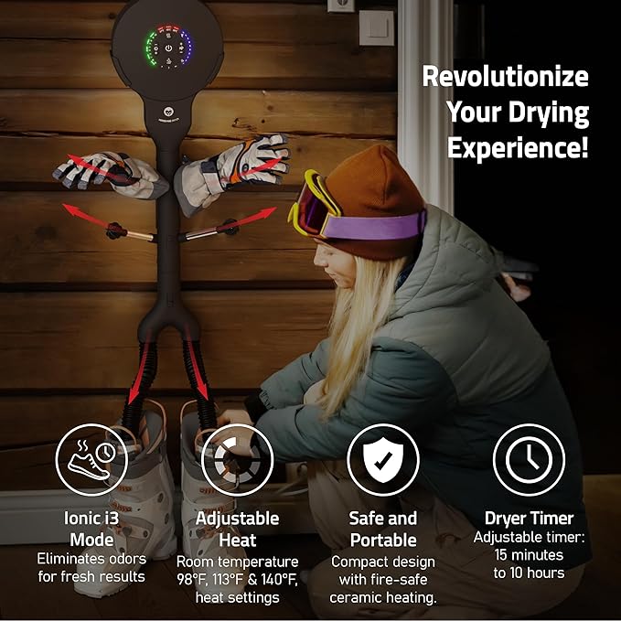 - Removes odor & smell with Advanced Technology - Our energy-efficient boot deodorizer is the ultimate odor eliminator for shoes, ski or snowboard boots. It removes the smell in shoes from sweat and foot bacteria, thanks to its innovative technology. Simply let it run for about 2 hours the first time to effectively eliminate odor, and then keep it on to maintain freshness or you can set from 15 min to 10 hour running timer