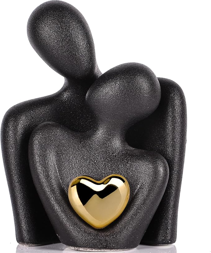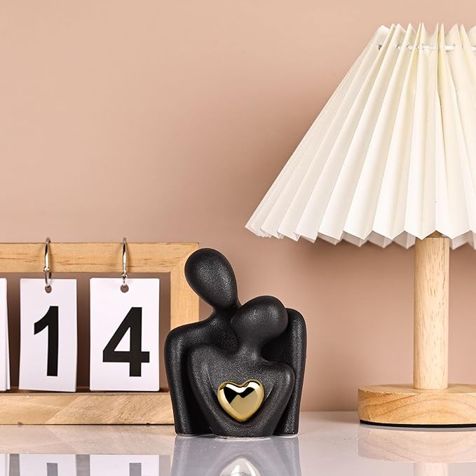 - Couples Bedroom Decor: This ceramic 'Hugging Couple Statue' embodies love and intimacy as the couple figurine shares a gaze, with a shining gold heart at the center, symbolizing a bright and precious bond. It's a mini yet impactful piece that brings a symbolic sparkle to any room, from the living room to the love office decor.
