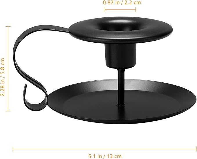 - Candle Holder: Hand crafted wrought iron ,matte black baking finish.Base size: 4.2",2.5"high,Top size:2.75" in diameter.Weight 0.46lb.