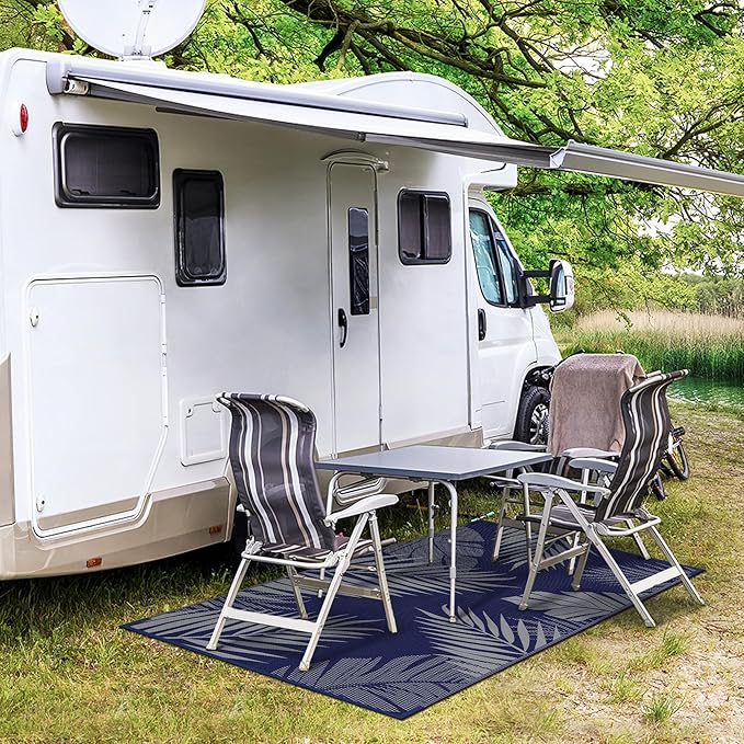 - Perfect Choice For RV Camping: Woven from lightweight plastic straws, these RV outdoor rugs fold compactly to fit in the included carry bag. This portable waterproof outdoor rug is easy to carry, with 4 corner loops and stakes to secure it. Using this camper rug reduces travel fatigue and adds plenty of space for fun — also a stylish touch for fall decor when setting up your campsite