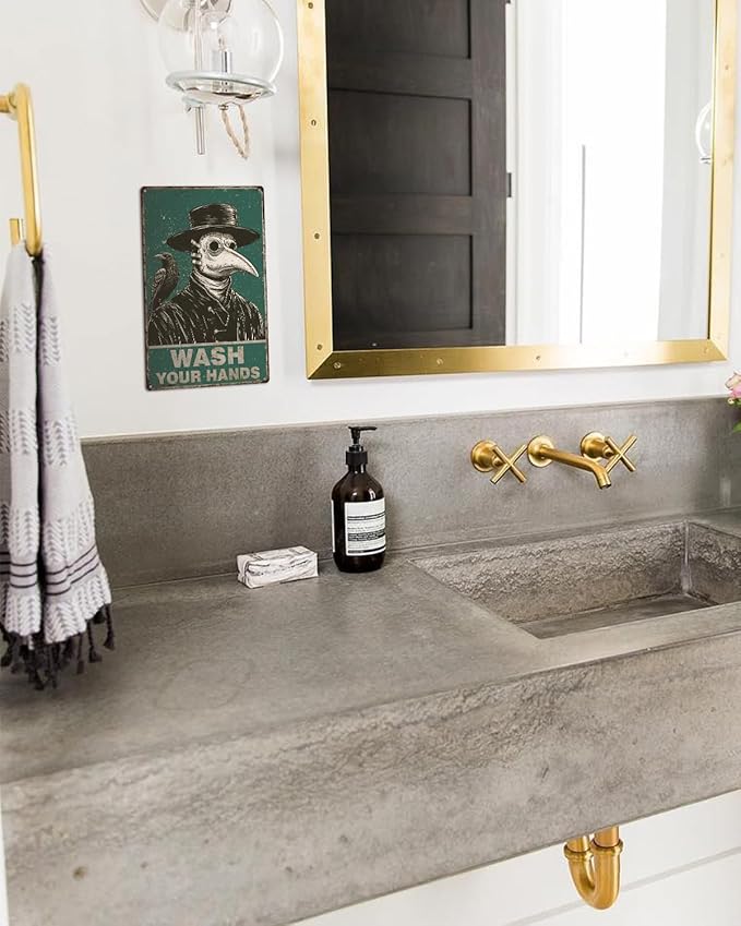 ALKB Halloween Bathroom Decor 8x12 Inch - WASH YOUR HANDS, Gothic Vintage Metal Tin Sign, Novelty Gifts for Men Women Adult