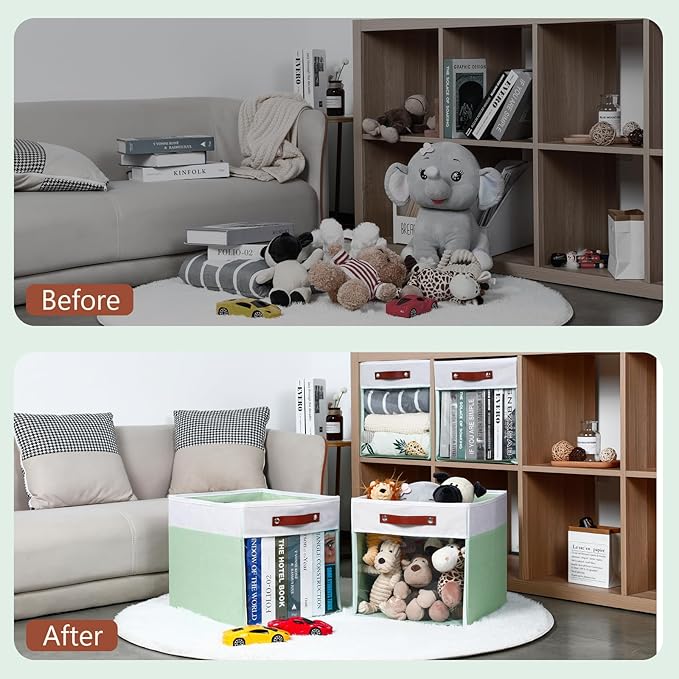 - 【Multi-functional】The cloth storage bins for cube storage can be used in a variety of ways, decorative storage bins for storage can be used in the bedroom to separate clothes and make your wardrobe more tidy; cubby clothes organizer bins can be used in the living room to organise magazines, toys, blankets, etc.;and large fabric storage baskets for shelves can be used in the laundry room as a dirty clothes basket. In addition, collapsible storage bins are also very suitable for offices, game room
