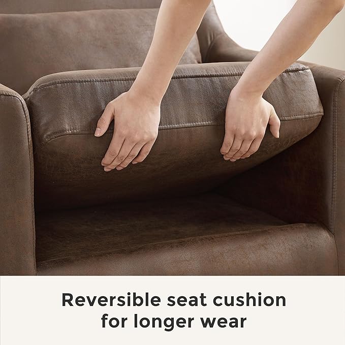 Extra Deep Accent Chair, Comfy Fabric Armchair with Wood Base, Upholstered Single Sofa Chair for Living Room & Bedroom, Faux Leather Dark Brown