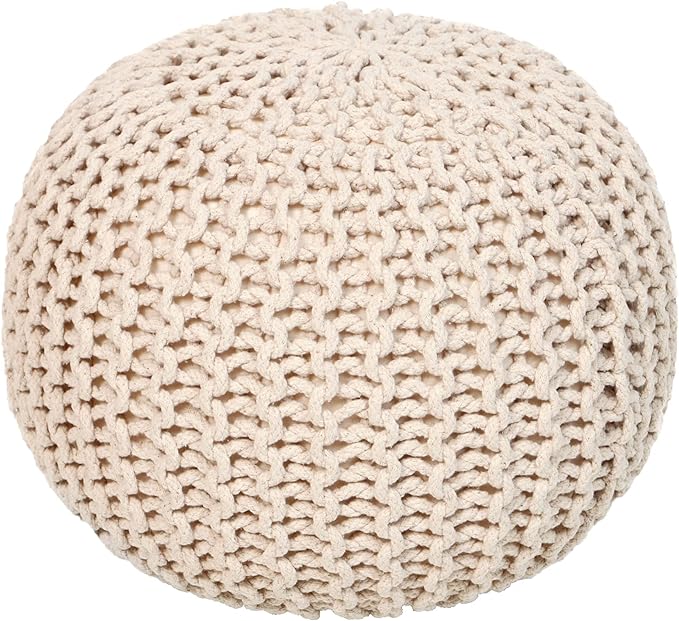 - MAKES A LOVELY, THOUGHTFUL GIFT IDEA: Our knit braided accent cord pouf ottoman is a gift that will keep on giving for many years to come. Surprise a friend or family member with one for a housewarming party, birthday, holiday, and other special occasions. Mix and match for a fun pop of color or choose one that best matches your décor and aesthetic.