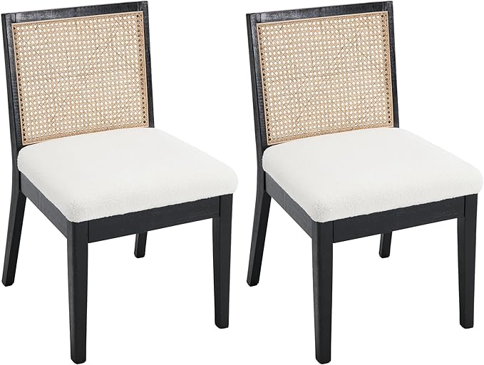 - MODERN DESIGN These modern dining chairs feature a padded cushioned seat, a square rattan back, and black wood legs. Simple but elegant, they will be a great addition to your home