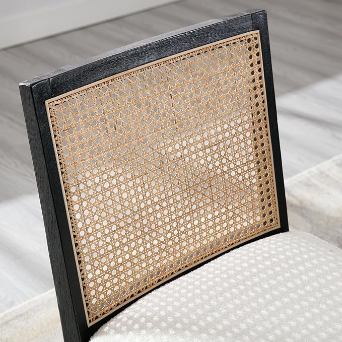 VESCASA Upholstered Dining Chairs with Square Rattan Back, Armless Padded Sherpa Fleece Cushion Dining Chairs with Wood Legs for Dining Room, Kitchen, Set of 4, Black Frame