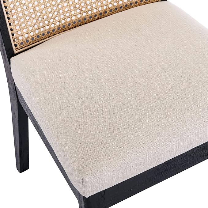 VESCASA Upholstered Dining Chairs with Square Wooden Rattan Back, Armless Padded Linen Cushion Dining Chairs with Wood Legs for Dining Room, Kitchen, Set of 4, Black Frame