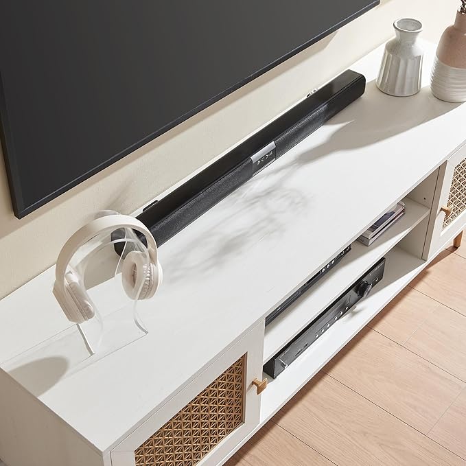 - Stable Structure: The stable engineered wood and four firmly tapered legs makes whole complete on piece enhance stability,the max weight capacity of this wood entertainment center up to 75 LBS,can make the TV stand last for a long time.
