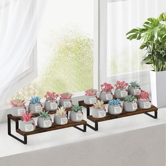- Convenient Design: The stepped design makes efficient use of your counter space. This wooden display riser is a great idea for displaying toy figurines in cabinets, celebrating party desserts, and cosmetics on the dresser. The raised tiers help to create an eye-catching feature for your items.