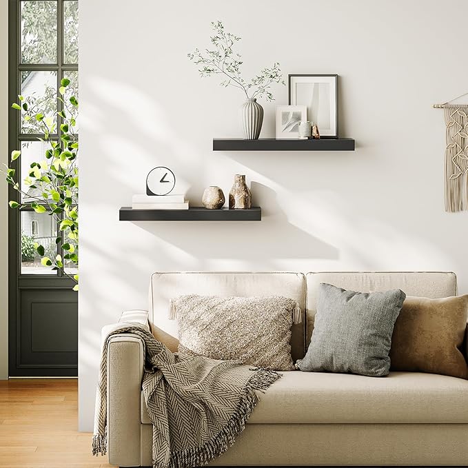 - Exquisite Wall Surface Decoration: Two classic and elegant black wooden shelves can be placed on each wall surface of all household rooms. This floating shelf for room wall is not only for its decoration effect, but also for this wall shelves high practicality. It is an ideal place to display your beloved photos, trophies and other delicate ecorations