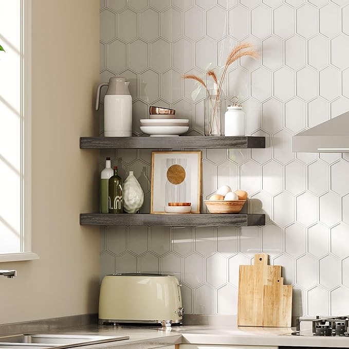 - Exquisite Wall Surface Decoration: Two elegant charcoal gray wooden shelves can be placed on each wall surface of all household rooms. This floating shelf for room wall is not only for its decoration effect, but also for this wall shelves high practicality. It is an ideal place to display your beloved photos, trophies and other delicate ecorations