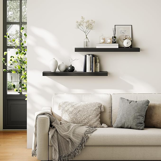 - Exquisite Wall Surface Decoration: Two classic and elegant black wooden shelves can be placed on each wall surface of all household rooms. This floating shelf for room wall is not only for its decoration effect, but also for this wall shelves high practicality. It is an ideal place to display your beloved photos, trophies and other delicate ecorations