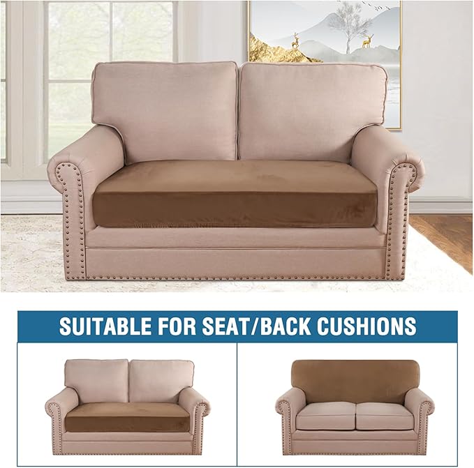 H.VERSAILTEX Velvet Stretch Individual Couch Cushion Cover Plush Slipcover for Loveseat Sofa Seat Furniture Protector Cover (1 Piece Loveseat Cushion Cover, Camel)