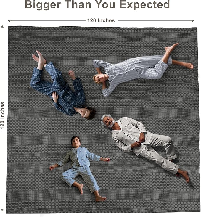 PHF 100% Cotton Waffle Blanket Oversized King 120"x120", Lightweight Breathable Extra Large 10'x10' Summer Blankets for Bed, Giant Big Luxury Aesthetic Woven Bedding for Home Decor, Charcoal Grey