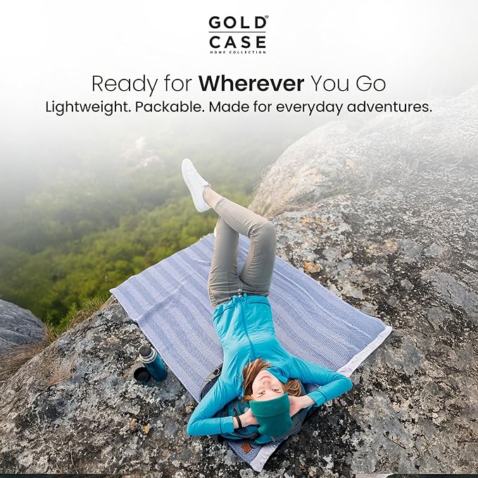 Gold Case Throw Blanket for Bed – 100% Recycled Turkish Cotton Bed Blanket – Decorative Throw Cotton Blankets for Living Room & Bedroom – Elegant Navy Blue Woven Queen Blankets – 90x90