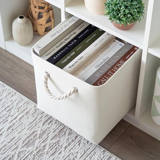 OrganiHaus 12x12 Cube Storage Bins 4 Pack, Foldable Cube Storage Organizer w/ Rope Handles, Collapsible Fabric Bins for Toys, Clothes & Closet Organization, Fabric Square Baskets - Off-White