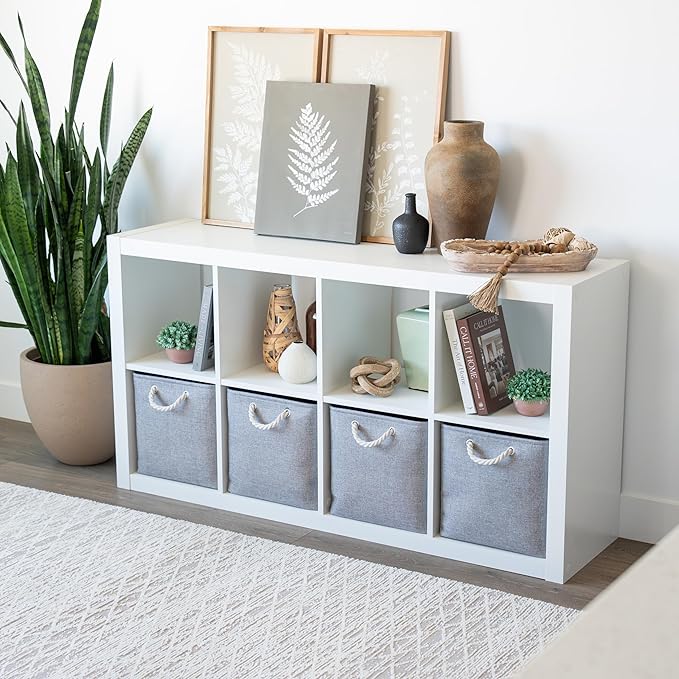 OrganiHaus 13x13 Cube Storage Bins 4 Pack, Foldable Cube Storage Organizer w/ Rope Handles, Collapsible Fabric Bins for Toys, Clothes & Closet Organization, Fabric Square Baskets - Gray