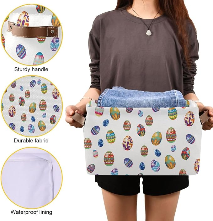 Easter Storage Basket Cube Storage Bins Organizer Bag Collapsible Closet Shelf Baskets with handle for Baby Cloth Pet Toy Book 14.2×10.2×8.3 IN