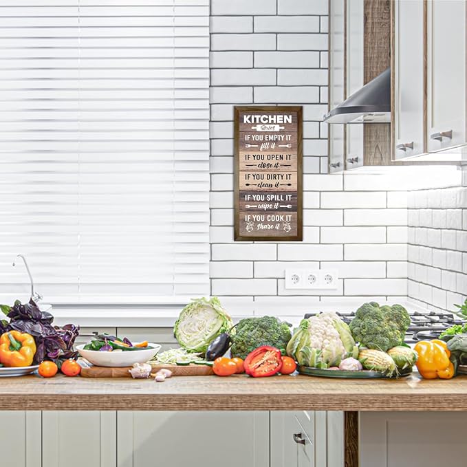 - PREMIUM QUALITY: This wooden sign is durable and well-made, suitable for home kitchen rules and brings a chic look to your kitchen;