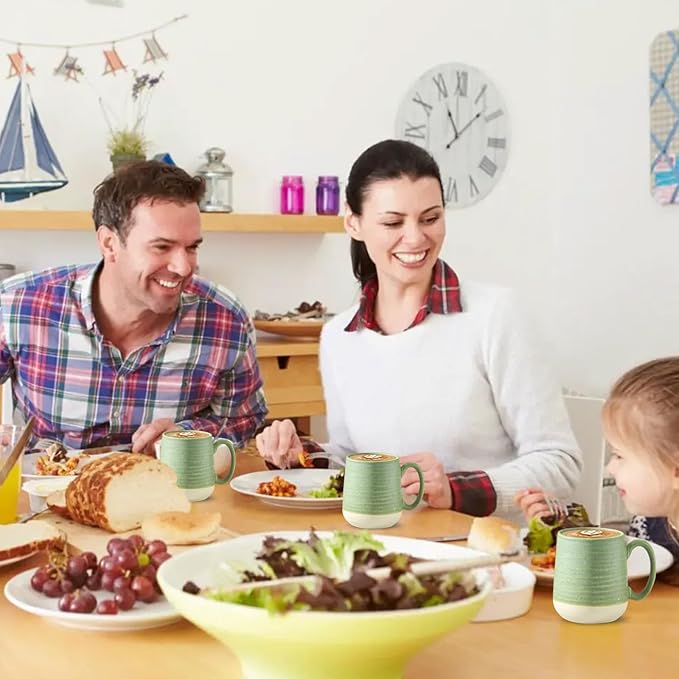Hasense Stoneware Coffee Mugs Set of 6, 15 Oz Large Coffee Cups with Handle, Tea Mugs for Men and Women, Modern Coffee Mug for Cappuccino, Milk, Cocoa, Microwave & Dishwasher Safe, Green
