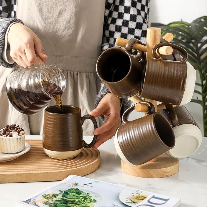 - EXQUISITE AND VINTAGE DESIGN: Hasense large coffee mugs are feature two-tone glaze which is a beautiful and classic decor for your home and kitchen. Are you looking for a coffee mug set for daily use? Then our brown coffee mugs will be the right set for you.