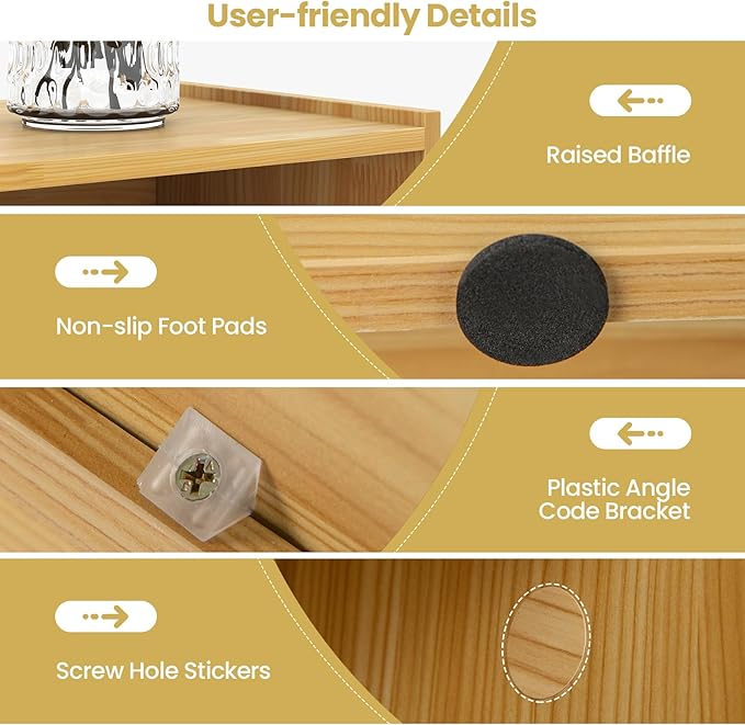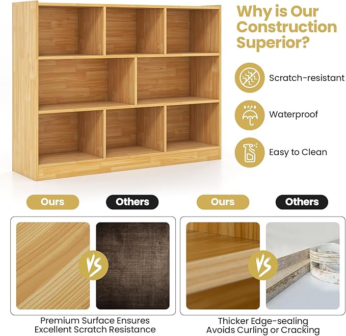 - Premium Material & Sturdy Construction: Made of selected engineered board, the wood storage cube bookcase is deform-proof for a long lifespan. With non-slip adhesive pads, the storage cabinet ensure great support for stability without damaging the floor. Fixed plastic buckles on the back enhance the additional steadiness.