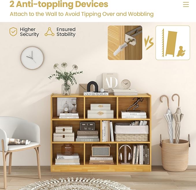 - Spacious Storage Space: The 3-tier bookcase is designed with 8 open shelf compartments that provide plenty of space for classified storage for your books, CDs, magazines, and collections and keep your room organized. It is suitable for the living room, kitchen, or bedroom as a display cabinet, bookcase, storage cabinet, toy cabinet, etc.