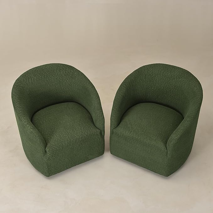 - PREMIUM BOUCLE FABRIC: The boucle upholstered swivel barrel chairs are covered in a premium boucle fabric that not only looks great but also feels cozy and soft to the touch. The texture of the boucle fabric adds an extra layer of comfort to the chairs, making it a great option for anyone looking for a comfortable seating option.